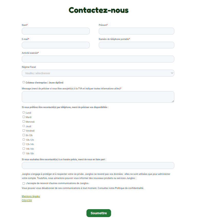Sur le site de Jungloo, je peux compléter un formulaire me permettant d'avoir une réponse au plus vite.